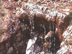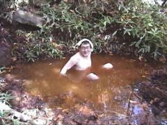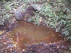 こんな湯溜りが現れました。 底から湧いているようです。 湧出量はそんなにありません。 底をかき回してみると時折泡がぶくぶくと出てきます。 これは ひょっとして メタンガス??? ちなみにここの湯からは なんとも言えない臭い匂いが漂ってきます。 |