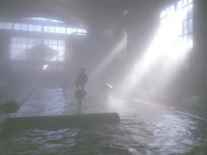ここの内湯はとにかくすばらしい。 木造としては国内でも類を見ない大きさ。湯量も豊富。