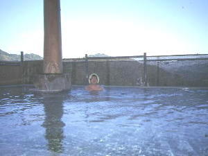個人持ちの温泉があると聞きやってくると 露天風呂がオープンしてました。 眺め良好。 湯もかなりツルツルするアルカリ泉です。