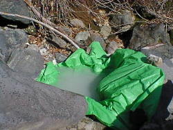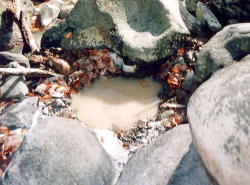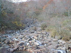 いこいの村栗駒の奥の沢に新湯と名の付いた温泉マークがあり気になり行ってみました。 なんとなく温泉の匂いがするものの場所がよくわかりませんが・・・ |