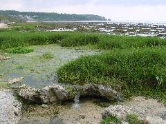 これは??? 糸満市の海岸にある湧出個所。 湧出場所で25.5℃。温度では温泉だが・・・ |