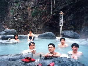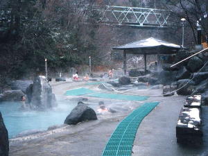 露天風呂のオンパレード。 水着不可の混浴。一番大きな露天は水だった。