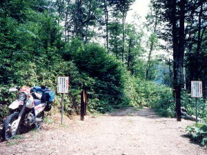 国道341号から黒石林道に入り11kmほどで分岐点を右手に入るとまもなくゲートです。 ここにバイクを停め歩き初めます。 途中温泉へ行ってきた人とすれ違い、挨拶を交わしましたがなんと彼は下駄履きで歩いていました!!! |