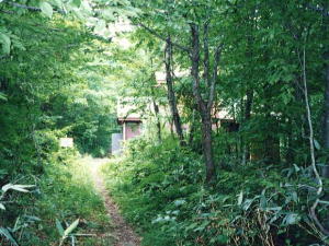 すると間もなく小屋が見えてきます。通称見張り小屋です。この小屋の裏に温泉があります。 |