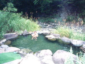 見張り小屋にあるから見張りの湯と呼ばれています。後ろの沢が源泉地帯です。 触れないくらいの熱さです。 脱衣所にメモが残っており、 この沢の上に木製の台を乗せてオンドルにすれば・・・なんて書いてありました。 たぶんすれ違った人のコメントでしょう。 |