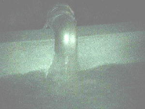 湯量は豊富で温度も40度少しです。味は気持ち甘いようです。 なぜか掛け流しの湯がそのまま捨てられずに一度溜められてから捨てられています。溜められている湯の温度はまさに適温。 |