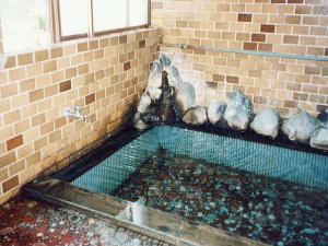 七倉ダム上にある食堂を兼ねた温泉。 熱い湯がたっぷりと注がれる。