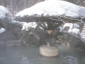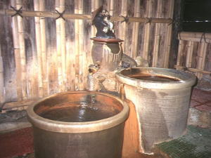 大きな露天と小人数(カップル?)用の小さなカメ、樽を利用した風呂も。