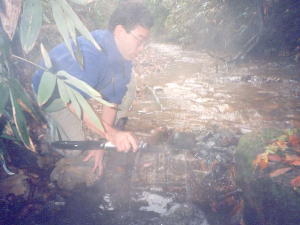 そこから沸いてきているのですぐに温度が変わります。 スコップで混ぜながらの入湯となりました。で、ここは全体的にドブっぽい臭いがきつく、あまり長湯はしませんでした。 |