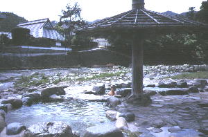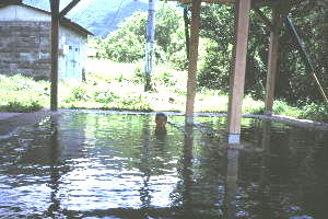 ![]() 洗濯ダンスで有名な温泉。 橋から丸見え。 |
