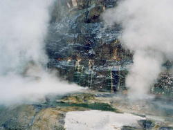 岩肌から湯と蒸気が吹き出ているところです。 近くにいると少し恐怖感を感じることもあります。 |