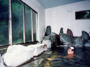 大きな岩風呂の内湯でのんびりと入浴。 比較的空いていた。