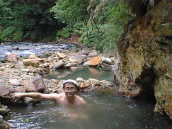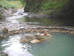 | 出湯橋付近から河原に下ると 大きな湯溜りがあります。 通称 テムジンの湯と呼ばれています。 大きく深く 眺めも良く 鹿の湯を除く野湯の中では一番ご機嫌な湯でした。 |