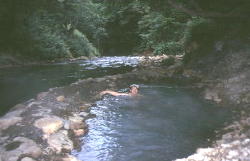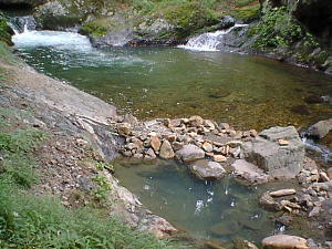 | 奥がメノコの湯の湯溜りです。 手前はまた別の源泉の湯溜りです。 |