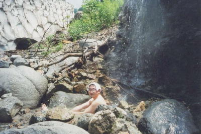何度来ても(といっても2回目か?)この神秘的な光景は感動ものです。 湯の温度は65℃。 pH3.3の酸性泉です。