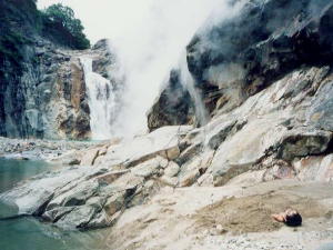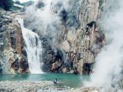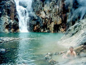 葛根田川上流の滝の上温泉にある滝壷に湯が沸いている。
