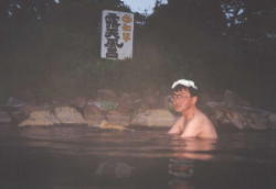 公園内の無料露天風呂 ここは人目が多く真っ昼間に裸で入るには度胸のいるところです。 また湯も少し汚く明るい時に入っている人はあまり見掛けません。 暗いと汚れが気にならないか・・・ |