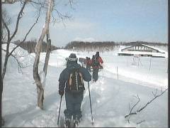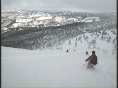 前岳の斜面を滑り降ります。 遠く景色を眺めながらの爽快な滑走です。 |