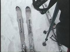 で、午後の部は最近ここで流行ってる板を借りました。 VOLANT CHUBBです。 ステンレスキャップの新雪用の板です。 |