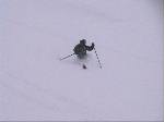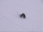 前を滑ってる人の姿を見失わないように滑ってます。 この借りた板はすごく浮きます。 午前中は細めの板で潜って苦労してたのですが全然別世界のようです。 |