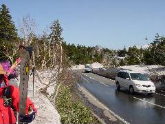 笠松峠の様子です。 通常のGWではここなら数メートルの雪の壁のはずなんだけど・・・ |