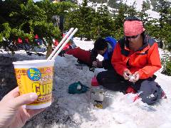 昼飯は今回はカップラーメンとおにぎりの組み合わせが主でした。 お湯もサーモスに入れていけば現地で沸かす必要もありません。 |