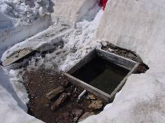 おお〜! 温泉か??? と思いきやこれはおいしい湧き水です。 絶対に入らないよう! |