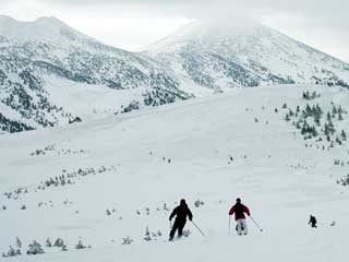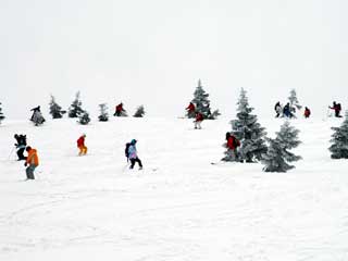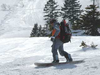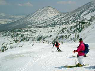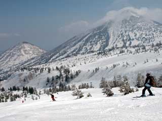 大岳の方面へ向ってまずひと滑り。 |