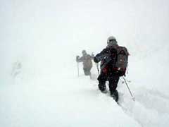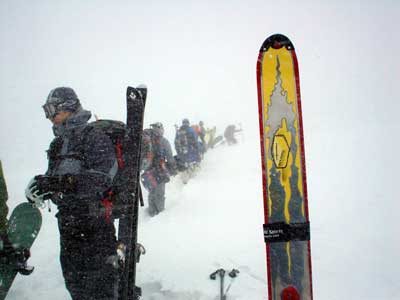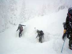 ルート造りも大変。 ガイドさん達が一生懸命ラッセルしてくれています。 |