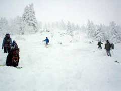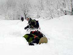 お? こけてるのは・・・さん? いつもこけたら雪を浴びせられているガイドさんにお返しの一撃! |