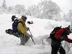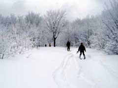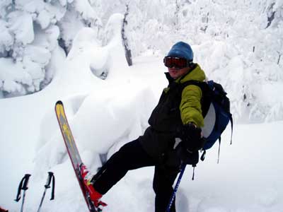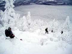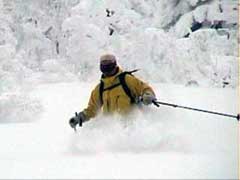 山頂からフォレストへ滑り込むコースです。 ここでは既にこの積雪。 スキー・ボード履くのも一苦労です。 でもその後が楽しい・・・はず。 |