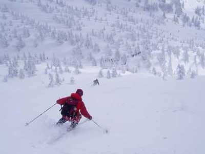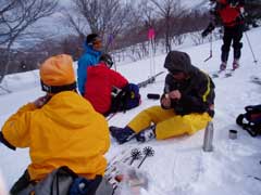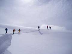 雪は多少(かなり?)クラスト気味。 それでも皆さんなんとか楽しそうに滑ってます。 私はいっぱいこけました・・・ |
