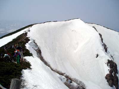 本日のコースは赤倉・井戸鞍部から滑り降ります。 ここからだと雪の状態はわかりません。 |