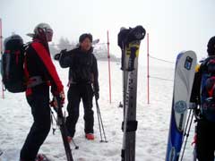 赤倉・井戸鞍部では他のパーティーが滑り出す直前? 気がつけばドピーカン? |