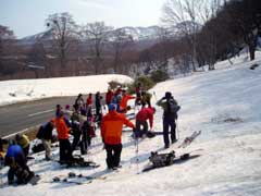 つ、ついて行けん・・・ この手のショートスキーの弱みは斜度のない所でのトラバースなのでした・・・ 辛い・・・ |