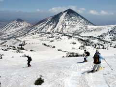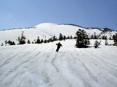 大岳・井戸岳鞍部より井戸岳東斜面を登ります。 |