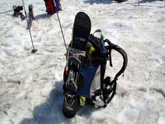 今回毎日板を変えて滑ってはいるもののゴールデンウィーク7日目で使用していない板はシールを忘れたこの板とシールが効かなくなった山板のみ。 担ぐなら軽いほうがいいかなとこの日はこの板にしました。 |