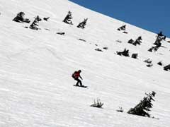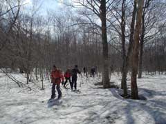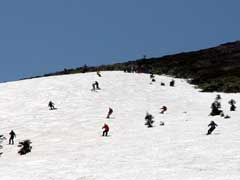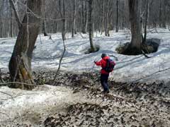さすがに下部の方は雪の状態が悪くなってきています。 そんなところ板で歩く??? |