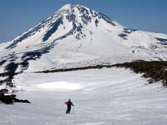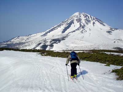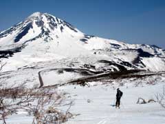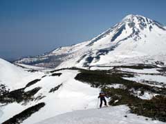やっぱり羅臼岳に向って滑ります。 雄大だ・・・ |