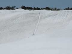 火口の反対側に何かずり落ちた跡があります。 人間か動物か・・・ まさか熊??? |