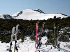 シール登行はここまで。 先客はここでスキーをデポしてツボ足で山頂を目指したみたいです。 ここからだと往復1時間はかかるかなあ・・・ 我々は出発が遅くここでタイムアップ。 15時半にはゲートが閉まるのです。 |