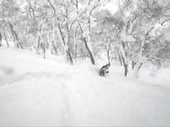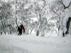調子こいて滑ってると足元を掬われます。 隠れた枝に引っ掛かって板を掘り出す図です。 |