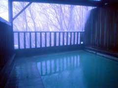 温泉は例の沼尻の源泉から運ばれてきます。 長い道のりにもかかわらず内湯は熱すぎて薄めないと入れませんでした。 露天は雪見でなかなか・・・ |