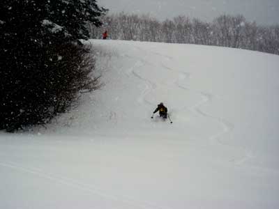 新雪レッスン? 参加者その2 Gさん ファミリーの多いスキー場って逆に言えば新雪がいっぱい残ってるってこと? なかなか楽しめました。 |