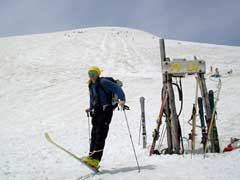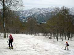 八甲田で山スキー三昧の帰り道、月山でスキーシーズンの締めをしにやってきました。 本日使用の板は10年前の山板です。 |